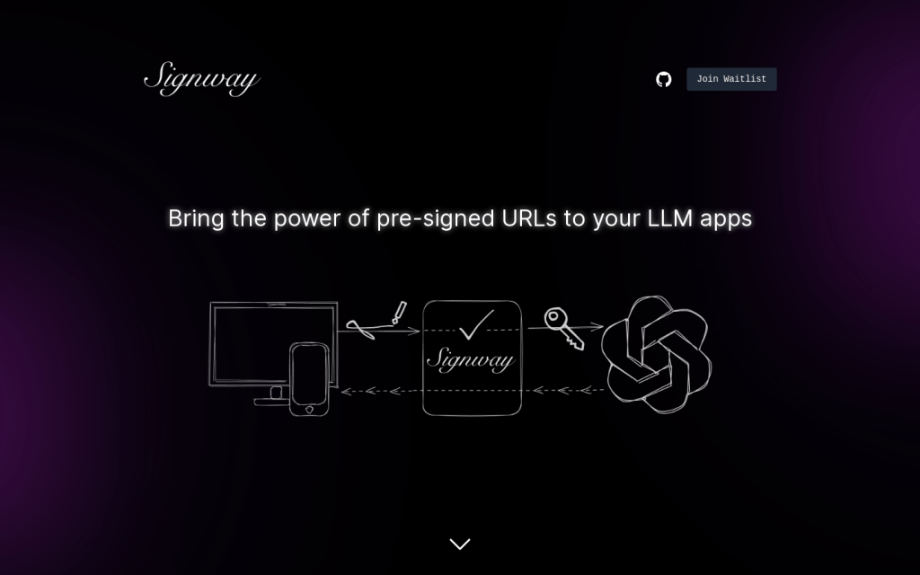 Signway為您的OpenAI應用提供預簽名URL功能,無需伺服器即可實現資料流。Signway透過預簽名請求,使用者可以直接從終端裝置接收流式響應,無需伺服器處理資料流,僅需建立預簽名URL。免費版提供每秒10請求、每個請求1Mb資料傳輸、1個應用。付費按使用計費。