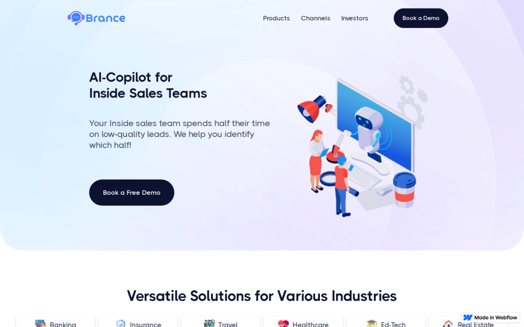 Brance是一款AI-Copilot軟體,為內部銷售團隊提供支援。透過GPT技術,Fine-Tuned LLMs和高階NLP聊天機器人,提升銷售轉化率,提高客戶互動。Brance的產品包括Chatengage,Chatsell和Chatsupport,適用於各行各業,如銀行、保險、旅遊、醫療、教育科技和房地產等。