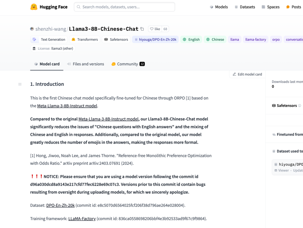 Llama3-8B-Chinese-Chat 是一個專為中文最佳化的聊天模型,基於 Meta-Llama-3-8B-Instruct 模型並透過 ORPO 進行微調。該模型顯著減少了中文問題英文回答以及回答中中英文混合的現象,同時減少了回答中表情符號的使用,使得回答更加正式。