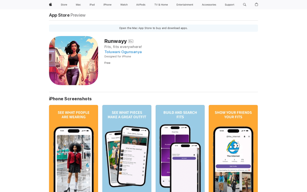 Runwayy是一款幫助您選擇出色服裝並展示風格的應用。它提供改進的服裝搜尋功能,適用於iPhone和Mac,無需收費。使用者可在iOS 16.0或更高版本的iPhone上使用,也可在macOS 13.0或更高版本的Mac上使用(需搭載Apple M1晶片或更高版本)。該應用不收集任何資料,適合年齡為9+的使用者。